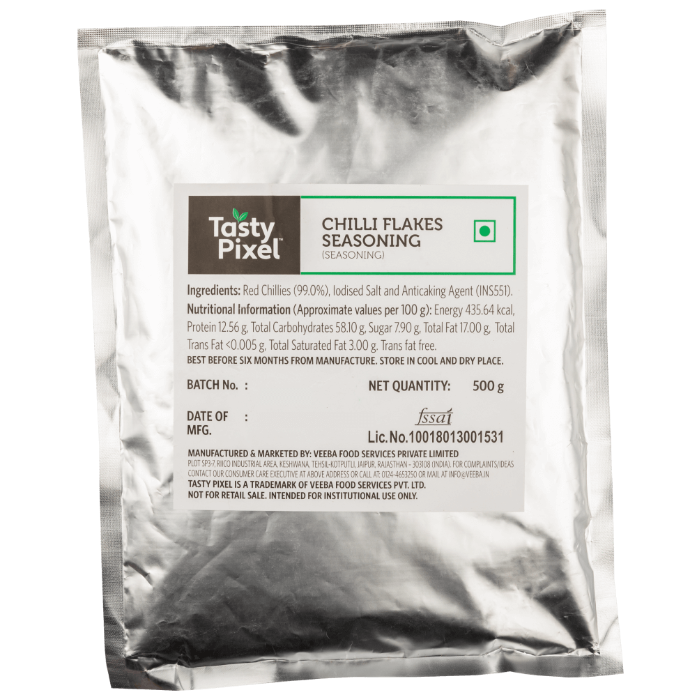 Veeba Chilli Flakes – 500G is a premium-grade seasoning made from carefully dried and crushed red chillies. With a vibrant color and bold heat, these flakes are ideal for adding spice and visual appeal to pizzas, pastas, garlic breads, fries, wraps, omelettes, and more.