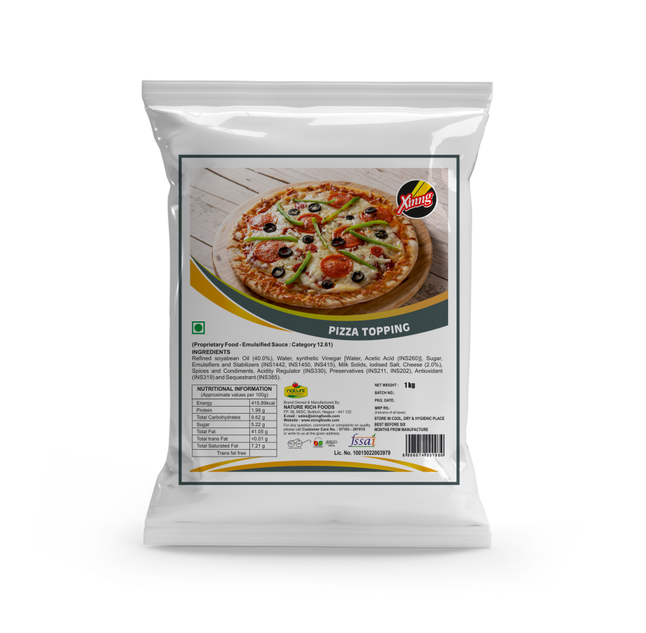 Deliver delicious, cheesy pizzas every time with Xinng Pizza Topping - 1kg, expertly crafted for professional kitchens, restaurants, cafes, and cloud kitchens. This smooth, creamy pizza topping offers a rich blend of cheese flavor and perfect consistency, making it easy to spread on pizza bases or use as a dip and sauce for various dishes.