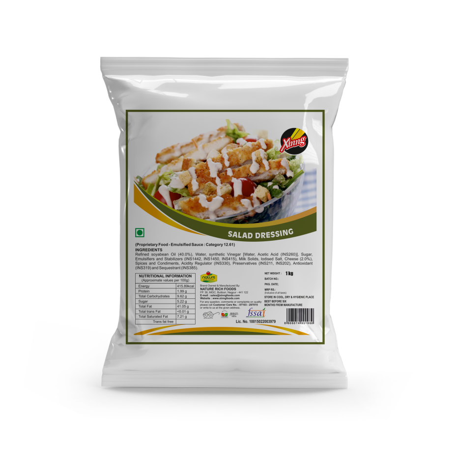 Upgrade your menu with Xinng Salad Dressing - 1kg, specially designed for restaurants, cafes, cloud kitchens, and foodservice businesses. Made with high-quality ingredients like refined soybean oil, milk solids, cheese powder, and carefully balanced seasonings, this emulsified sauce delivers a rich, tangy, and creamy taste that enhances any dish.
